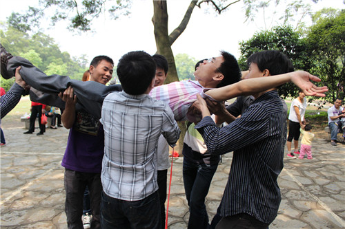 青年職工在做游戲。
