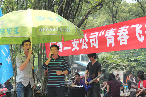 2011年4月23日,集團二安公司團委組織全公司各基層團支部在柳州市雀山公園舉行了主題為“青春飛揚” 露天音樂會團日活動,迎接第92個“五四青年節”的到來。公司董事長、總經理、黨委副書記黃鼎龍;公司黨委書記、紀委書記、工會主席藍錦俊;公司副總經理覃幼轍;公司副總經理、第三分公司經理莫雄清參加了此次活動。并為榮獲集團公司一屆二次職代會文藝晚會一等獎的演員及榮獲公司2010年度“十佳青年崗位能手”頒發榮譽證書及獎金。活動集表彰、素質拓展訓練、氣排球比賽,文藝表演等于一體,形式新穎,精彩紛呈。團員青年們積極參與,各自表演自己的特長,唱歌、跳舞等節目層出不窮,活動現場氣氛熱烈,高潮迭起,展現出了二安青年員工朝氣蓬勃、積極向上的精神面貌,吸引了不少圍觀者的眼球。此次活動的開展,增進了團員青年們的溝通交流,企業凝聚力進一步增強,更好地促進廣大團員青年員工立足崗位,扎實工作,不斷創新,充分發揮團員青年生力軍作用,在公司建功立業過程中體現青年人的人生價值,為公司健康快速發展奉獻青春力量!