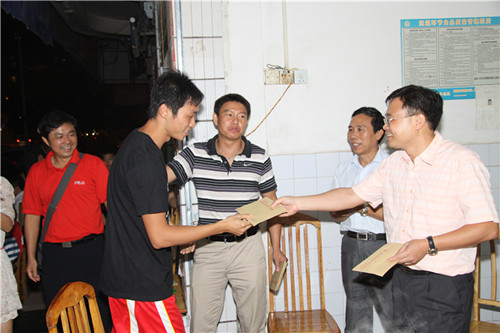 公司黃鼎龍董事長(zhǎng)(右一)、藍(lán)書(shū)記(右二)給球員頒發(fā)獎(jiǎng)金