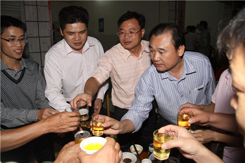 集團(tuán)公司黨委副書(shū)記曾慶生(左四)、公司黃鼎龍董事長(zhǎng)(左三)