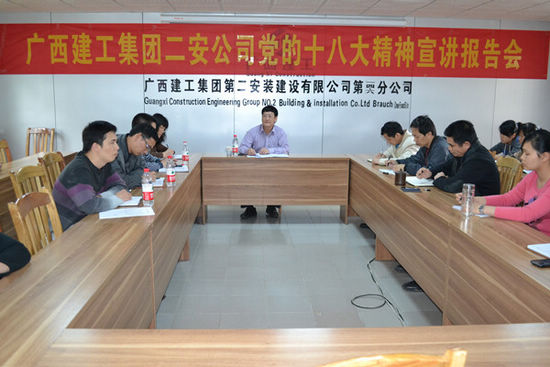 集團副總經濟師、二安公司黨委書記劉傳海,在公司柳州長豐路基地向第一、第四、第六分公司黨員、職工進行宣講。公司黨委副書記、紀委書記、工會主席羅振中在公司會議室向公司機關、第三分公司、直屬分公司黨員、職工進行宣講。講述了理解十八大精神的重要關鍵點、十八大的重要成果等內容,傳達了在今年召開全國兩會上習近平同志、李克強同志關于貫徹落實十八大精神的重要講話。并與黨員、職工開展互動交流,探討了貫徹落實十八大精神改善職工民生、推進公租房建設、工資制度改革、轉變工作作風、提高工作效率等問題。宣講會結合實際,生動活潑,受到廣大黨員、職工歡迎。